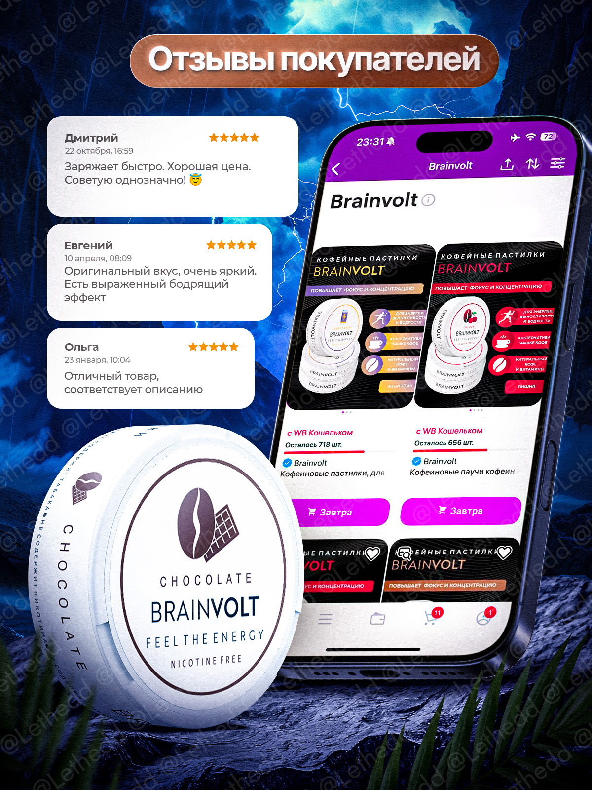 Brainvolt – безникотиновые энергетические паучи, обеспечивающие заряд бодрости, сравнимый с эффектом чашки эспрессо или банки энергетика.